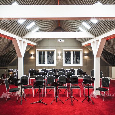 Bankettstuhl ST390 – robuster. leichter Stahlstuhl mit Komfortsitzfläche und praktischem Griff