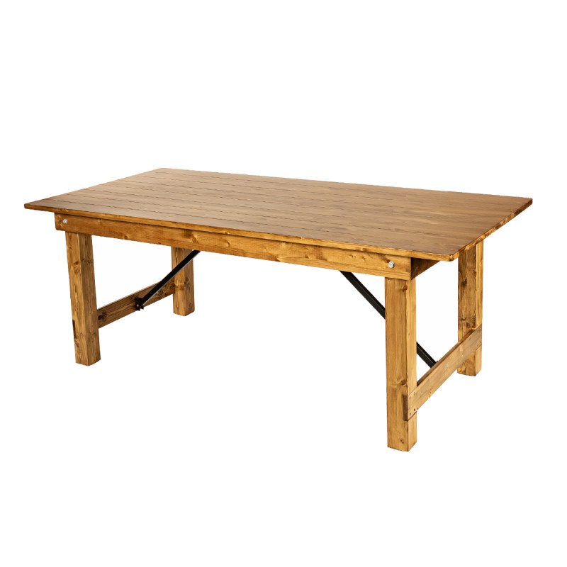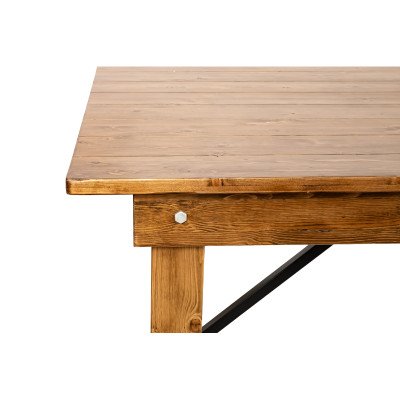 Banketttisch COUNTRY 200x100 cm aus natürlichem Kiefernholz. rustikaler Stil. klappbar und stabil für Festsäle und Restaurants