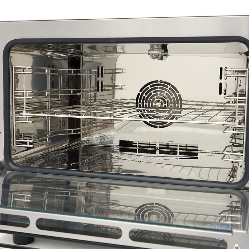 +49 (0) 6135 7040 450Mit diesem digitalen Kombidämpfer können Sie Fleisch. Fisch oder Gemüse dämpfen. wobei Vitamine. Geschmack und Farbe länger erhalten bleiben als bei anderen Garmethoden. Außerdem verhindert das Dämpfen das Austrocknen der Speisen und lässt sie auf den Tellern Ihrer Gäste gut aussehen. Die Kombination aus Heißluft und Dampf macht diesen Kombi-Dampfgarer zu einem vielseitigen Küchengerät. mit dem Sie viele Küchengeräte ersetzen können. Dieser Kombidämpfer ist ideal für die Verwendung mit 1/1 GN-Blechen oder 60 x 40 cm großen Backblechen. Er bietet Platz für bis zu vier Bleche auf einmal.