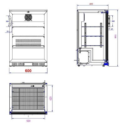 • KÜHLSCHRANK 1 GLASTÜR SCHWARZ SVE-450 BL