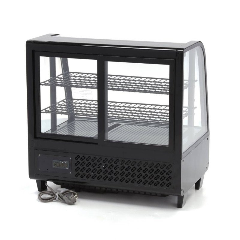 +49 (0) 6135 7040 450Diese Kühlvitrine mit gewölbter Frontscheibe ist eine Bereicherung für jede Bäckerei. jedes Café. jede Brasserie oder andere gastronomische Einrichtung. Mit einem Fassungsvermögen von 100 Litern und den zwei höhenverstellbaren Einlegeböden können Sie eine Vielzahl unterschiedlicher Produkte kühlen. Dank der LED-Beleuchtung im Inneren und den vier Fenstern auf jeder Seite werden die Produkte schön präsentiert und sind gut sichtbar. Die Schiebetüren auf der Rückseite erleichtern das Hinzufügen oder Entfernen von Produkten.
