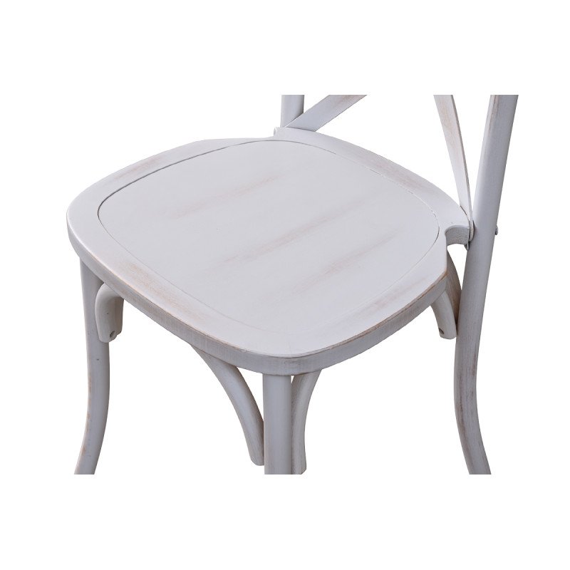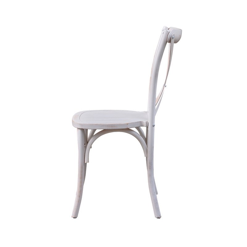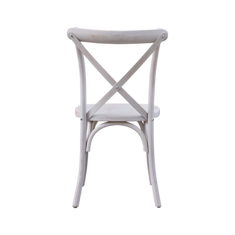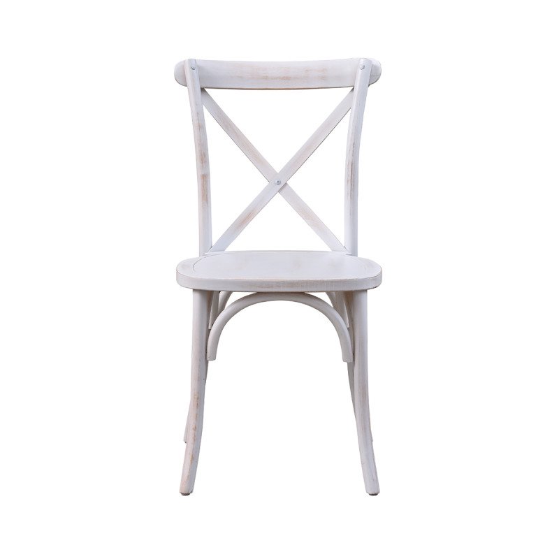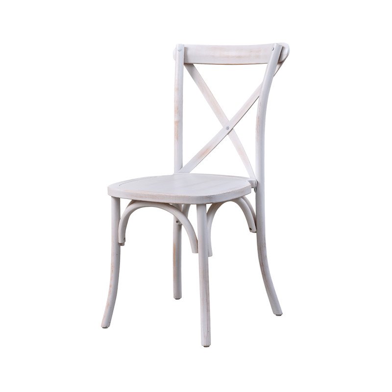 Holz Hochzeitsstuhl CROSS-BACK WOOD gealtert weiß – elegant & robust für stilvolle Events