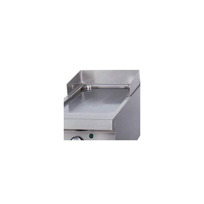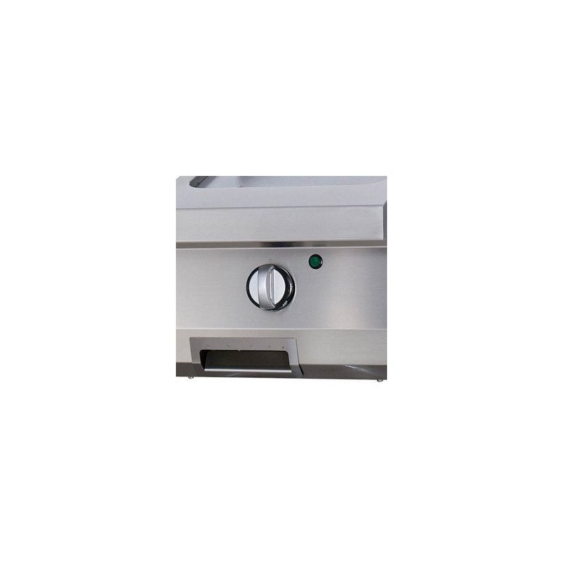 Mit dieser robusten Grillplatte grillen Sie Ihr Grillgut auf einer glatten. 15 mm dicken Platte aus gehärtetem Edelstahl mit satinierter Oberfläche. Die Grillplatte ist in einer wasserdichten Vertiefung eingelassen. Eine praktische 1.5-Liter-Tropfschale und ein Spritzschutz verhindern das Auslaufen von Öl und machen die Arbeit mit dieser Grillplatte sicher. Mit dem Sicherheitsthermostat kann die Temperatur zwischen 50 und 300ºC eingestellt werden. Wenn Sie in Ihrer Küche mit einer Kochzeile arbeiten. passt dieser Grill perfekt dazu.
