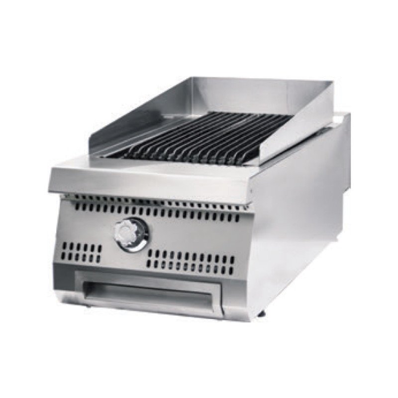 +49 (0) 6135 7040 450Der Premium Chargrill wird mit Gas betrieben und beheizt im Gegensatz zu normalen Grillplatten den Raum unter der Grillplatte. Unter dem schrägen Oberrost befindet sich ein gusseiserner Grillrost. der die Hitze gleichmäßig verteilt und dafür sorgt. dass das Fett in der Auffangschale unter der Kochfläche aufgefangen wird. Der Holzkohlegrill ist mit einem hohen Edelstahl-Spritzschutz ausgestattet. um Ölspritzer zu vermeiden. Zusammen mit dem ergonomischen Design des Holzkohlegrills sorgt dies für ein angenehmes und sicheres Arbeiten. Das Edelstahlgehäuse und die Schutzbleche sind leicht zu reinigen. Dank der Tiefe von 900 mm kann der Chargrill große Mengen an Lebensmitteln gleichzeitig grillen.