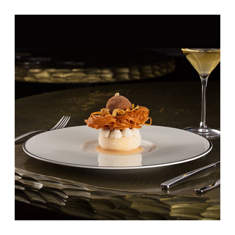 • Teller flach mit Rand aus Porzellan, Ø 28,7 cm, 12 Stück – Opulence Platinum Serie
