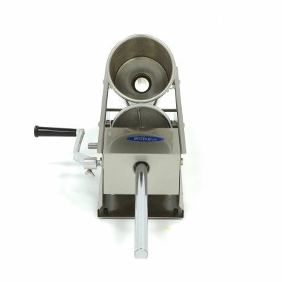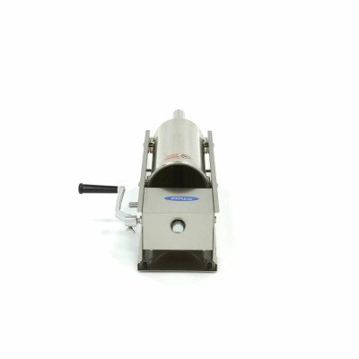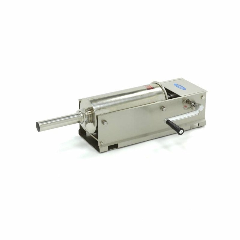 +49 (0) 6135 7040 450Wenn Sie Würste schnell und effizient zubereiten möchten. sollten Sie einen professionellen Wurstfüller verwenden. Dank seiner horizontalen Position passt dieser Wurstfüller auf jede Arbeitsplatte. Mit einer Füllkapazität von 5 Litern können Sie schnell eine große Anzahl von Würsten herstellen. Der Darm. in dem die Würste hergestellt werden. lässt sich leicht über eines der vier mitgelieferten Füllrohre schieben. Die Abmessungen der Füllrohre sind: 16. 22. 32 und 38 mm Durchmesser. Da die Druckplatte mit einer Entlüftungsöffnung versehen ist. gelangt so wenig Luft wie möglich in die Würste. Außerdem ist sie mit einer Dichtung versehen. An der Seite befindet sich eine Kurbel. die manuell betätigt werden kann. um Würste in zwei Geschwindigkeiten herzustellen.