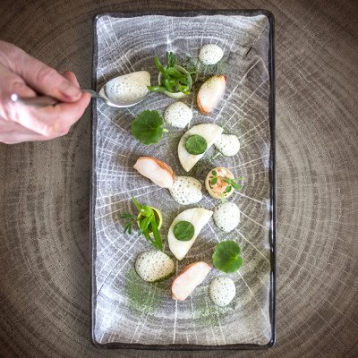 Teller coup flach aus Porzellan, handgefertigt, 24 Stück, Unikat-Serie Wild