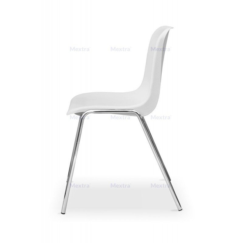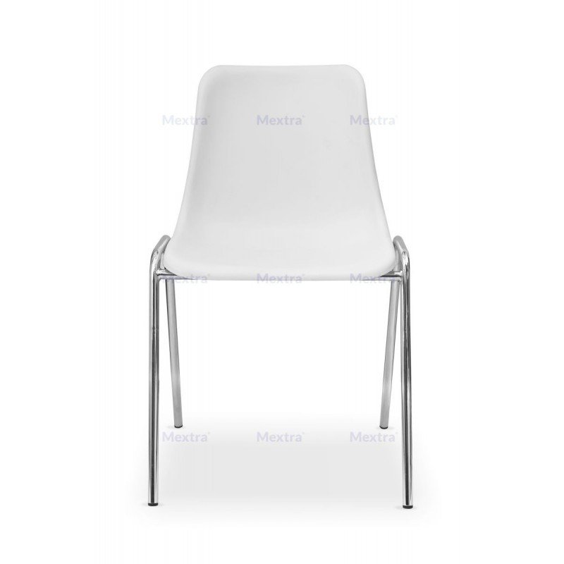 Konferenzstuhl MAXI CR weiß – leichter. stapelbarer Stuhl mit robustem Chromstahlgestell und wasserbeständigem Polypropylensitz