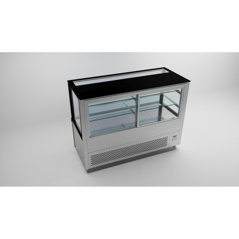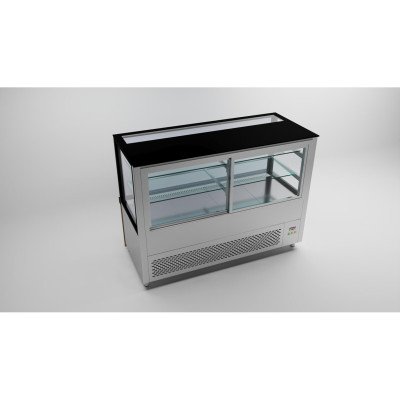 • Kühltheke / 150 cm / Akustikpaneel Holzfront / Schwarze Granit / 2 Ablagen