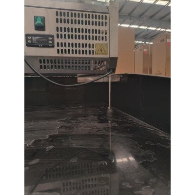 Pizza Kühltisch PRO. Granit Star Galsxy schwarz. 3 Türen + 3 Schubladen. 200 x 80 Kühlaufsatz GN1/4 mit Edelstahldeckel