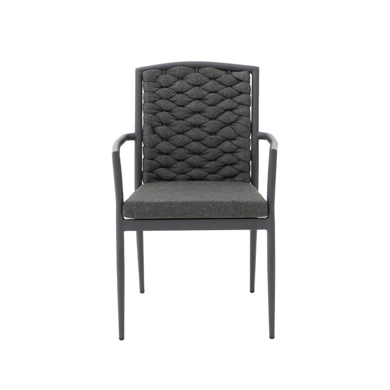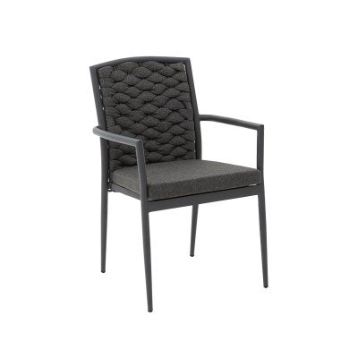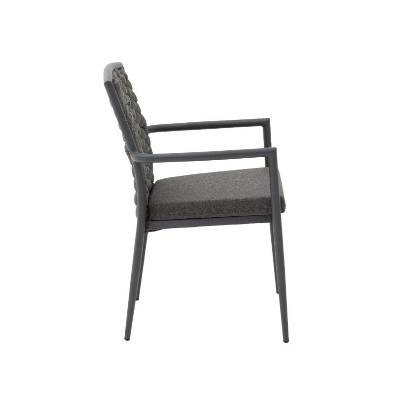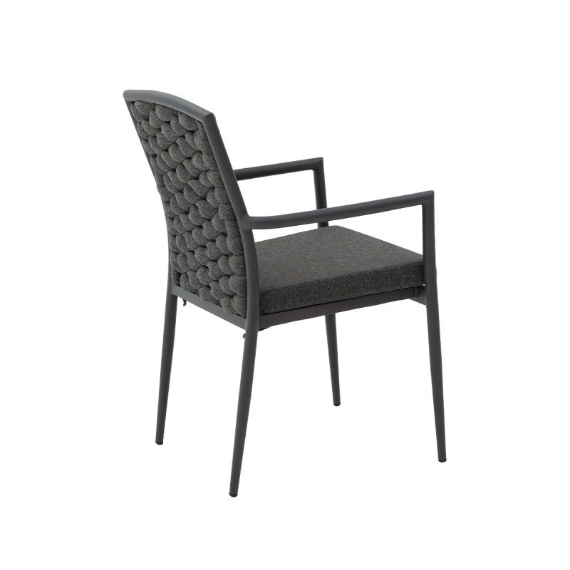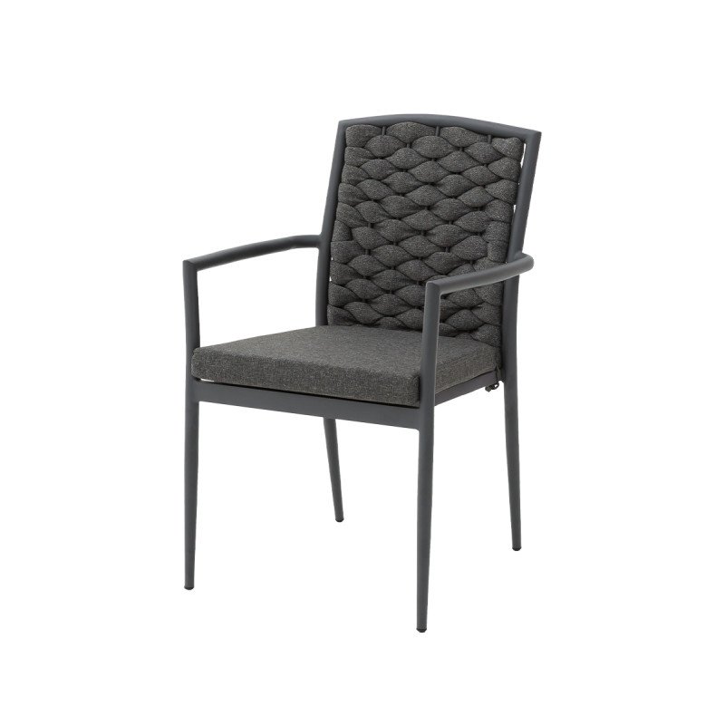 Technorattan Stuhl INTRECCIO anthrazit – wetterbeständig & stapelbar mit Kissen