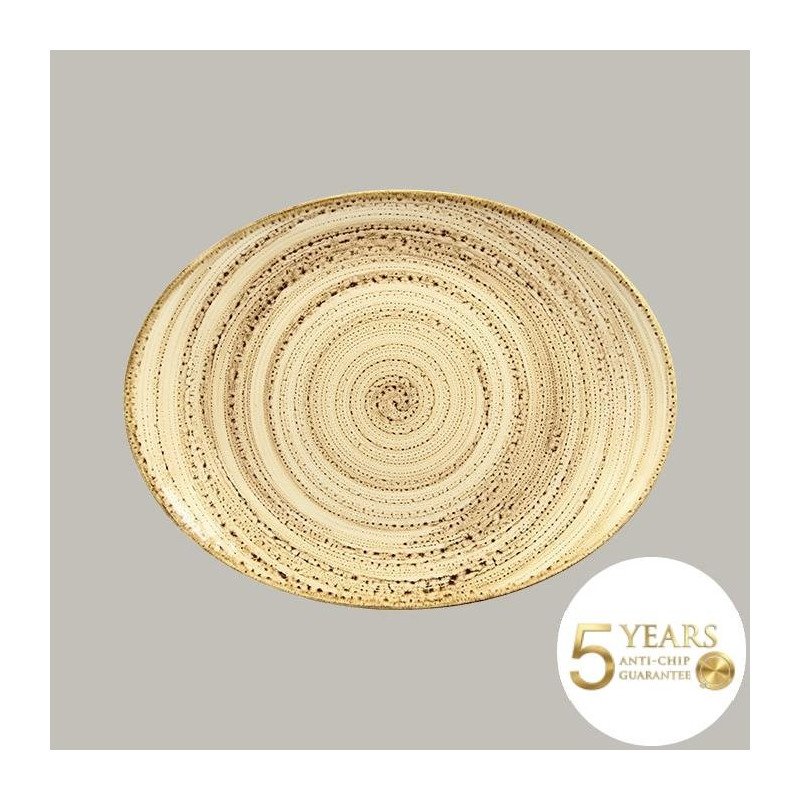 Teller coup flach Twirl Sand-Beige, 36x27 cm, 6 Stück, handverziert, langlebig
