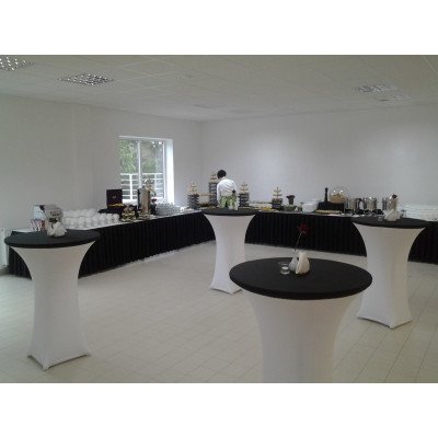 Banketttisch K–200 – Stabiler. klappbarer Cocktail Stehtisch mit melaminbeschichteter Tischplatte und Stahlrahmen