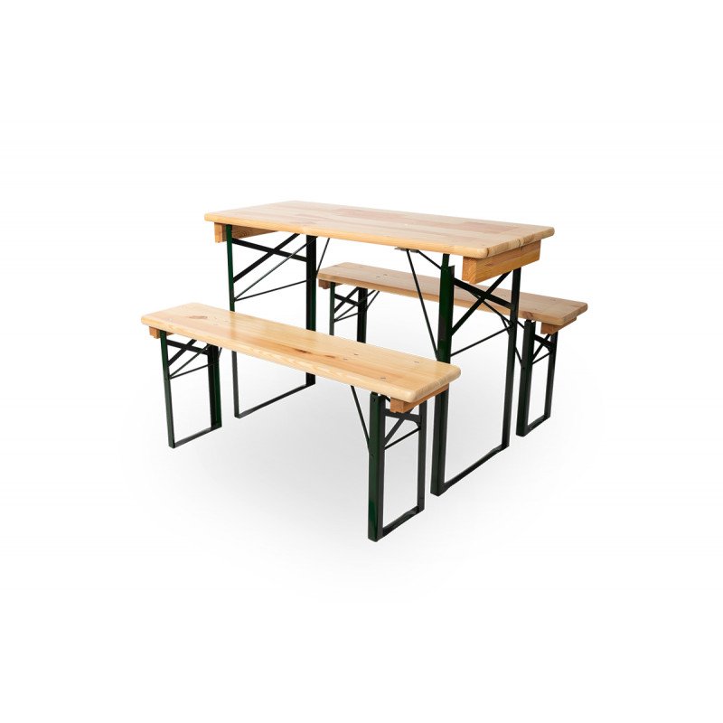 Bierzeltgarnitur WOODY STRONG 110x50 cm aus robustem Kiefernholz mit UV-Lackierung und stabilen Stahlwinkeln