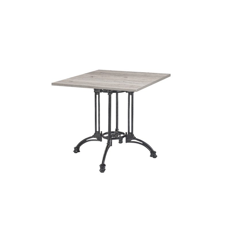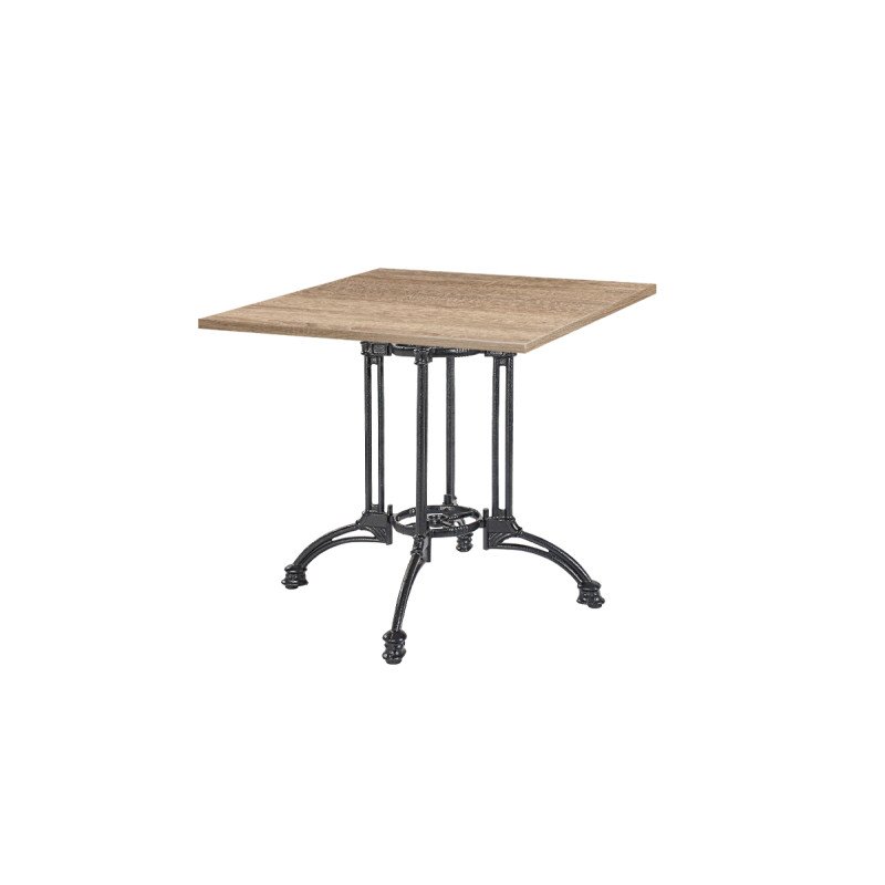 Bistrotisch RUSTICAL QUATTRO mit Laminierte-Platten – stabiler Gusseisen-Tisch für Gastronomie und Außenbereich