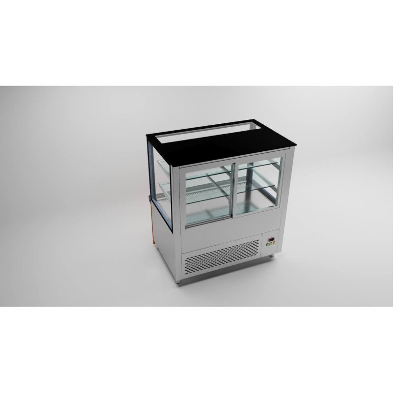 Kühltheke / 100 cm / Akustikpaneel Holzfront / Schwarze Granit / 2 Ablagen