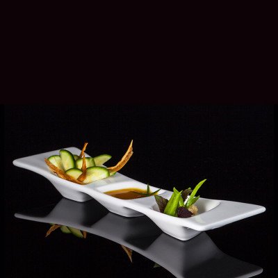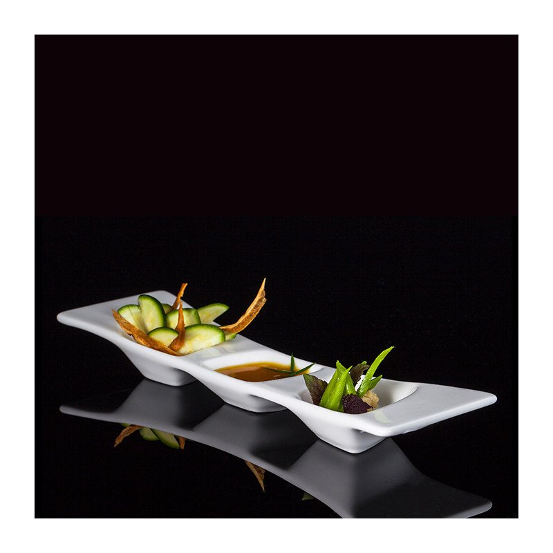 Platte mit 3 Vertiefungen aus Porzellan – ideal für Aperitifs & Sushi