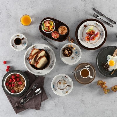 Teller coup flach aus Rakstone, handbemalt, 24-teilig, robust und alltagstauglich