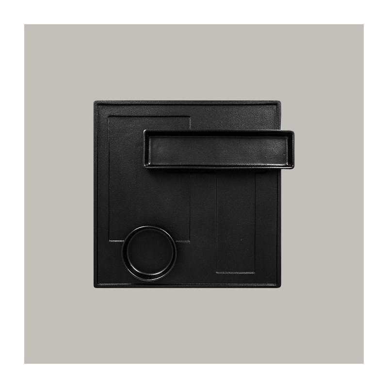 • Teller flach quadratisch Kudamono mit tiefschwarzer Glasur, 6 Stück