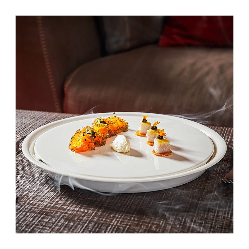 Doppelboden Teller für Meeresfrüchte aus Porzellan, Ø 29 cm, 6 Stück