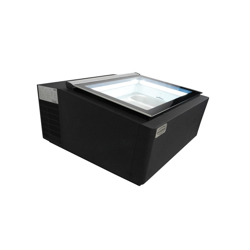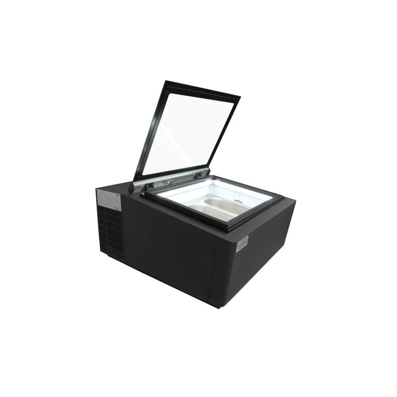 TISCHMODELL SPEISEISVITRINE SCHWARZ ÖFFNET AUF DER KUNDENSEITE