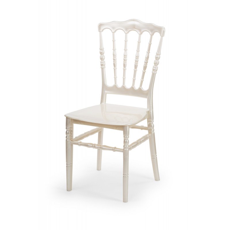 Hochzeitsstuhl CHIAVARI NAPOLEON Pearl – Eleganter. leichter Polypropylen-Stuhl in 6 Farben. stapelbar bis 11 Stück. 3 Jahre Gar