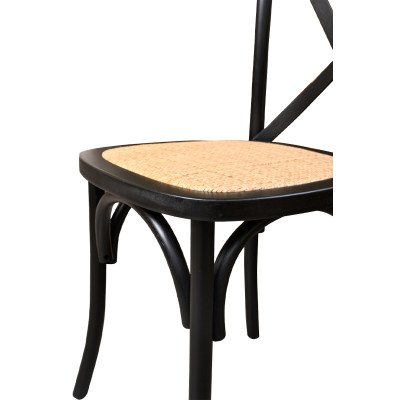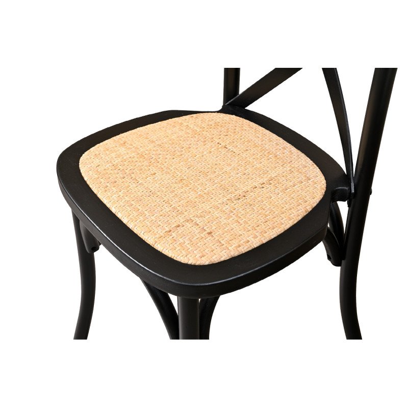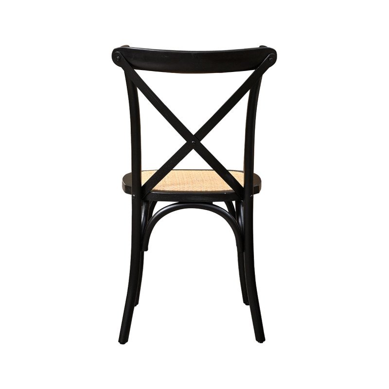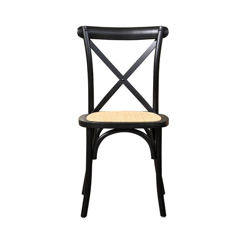 Holz Hochzeitsstuhl CROSS-BACK WOOD RATTAN schwarz – elegant & stabil