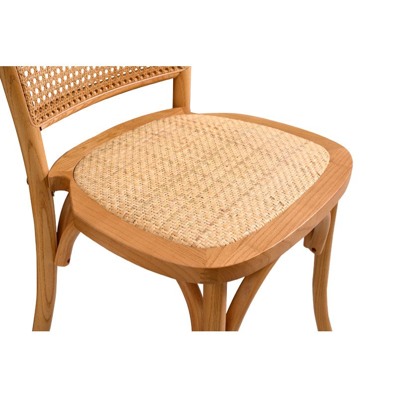 Holz Hochzeitsstuhl PALERMO in natürlichem Honig mit Rattan-Sitzfläche – mediterraner Stil und Komfort