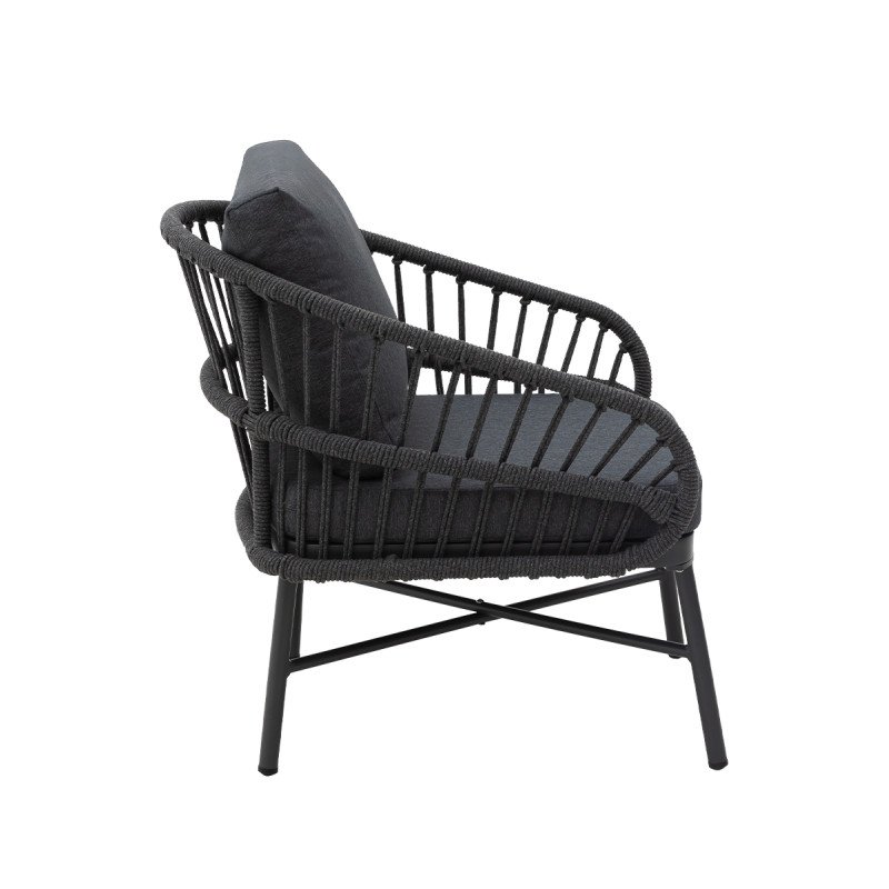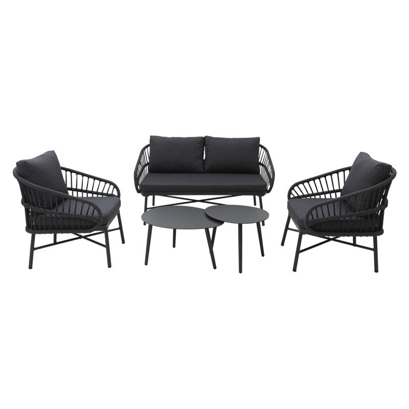 Technorattan Set CORDA – Elegantes. modernes Lounge-Set mit kordelartigem Geflecht und Aluminiumtischen