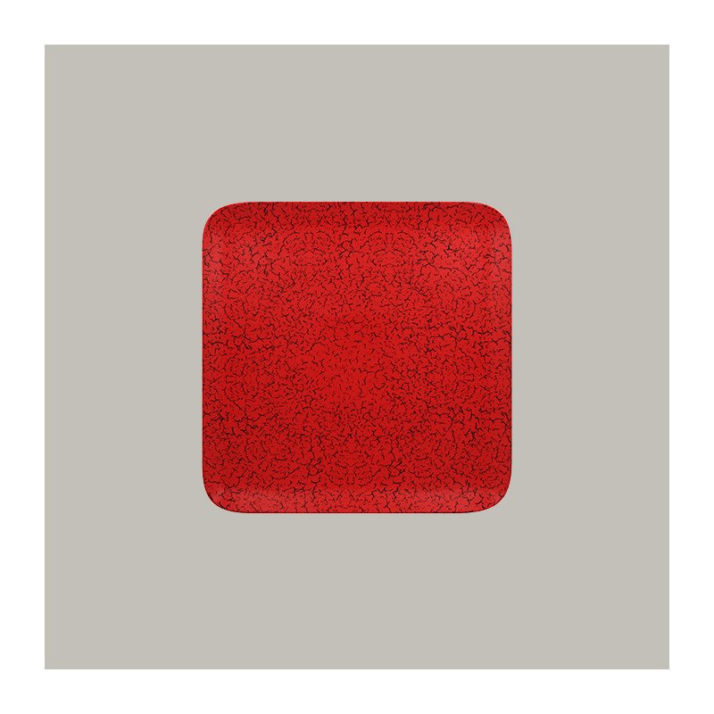 Teller flach 27 cm quadratisch aus Porzellan in leuchtendem Rot und Schwarz – RAK Porcelain Fusion Ruby Kollektion