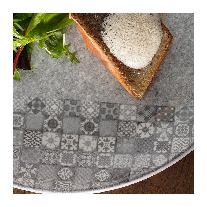 • Teller coup tief aus Porzellan mit granitartiger Glasur – 12-teiliges Set